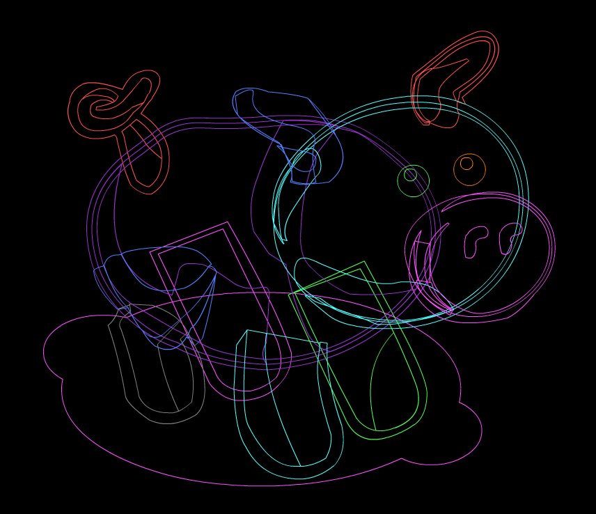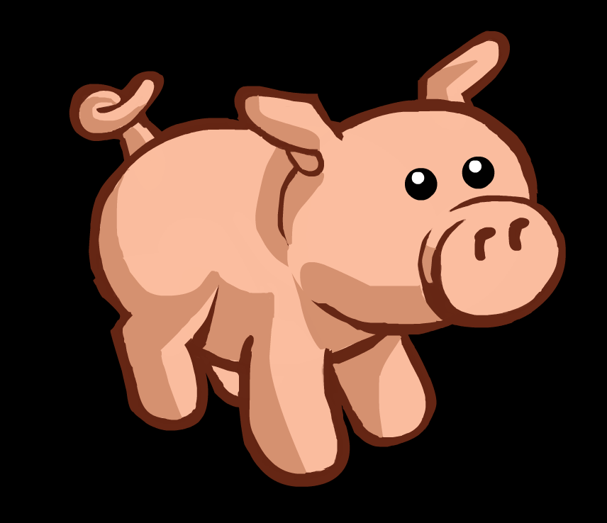 This view shows the original pig with all of its lines and corners exposed. Many of these details fall below a 1px size when shown at regular size.